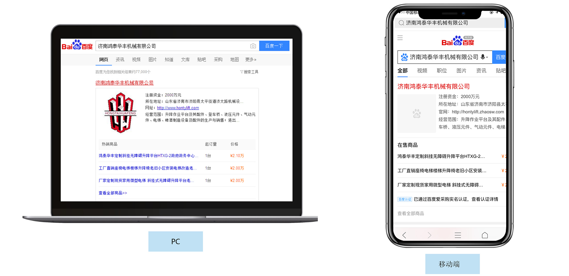 PC、移動網頁、百度APP,多端同步展現商品信息,方便買家搜索觸達。