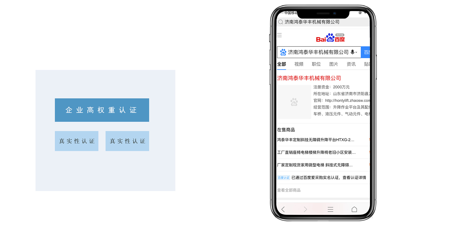 在百度搜索結果中,強樣式特型卡片展示,為商家打造品牌,提示知名度。