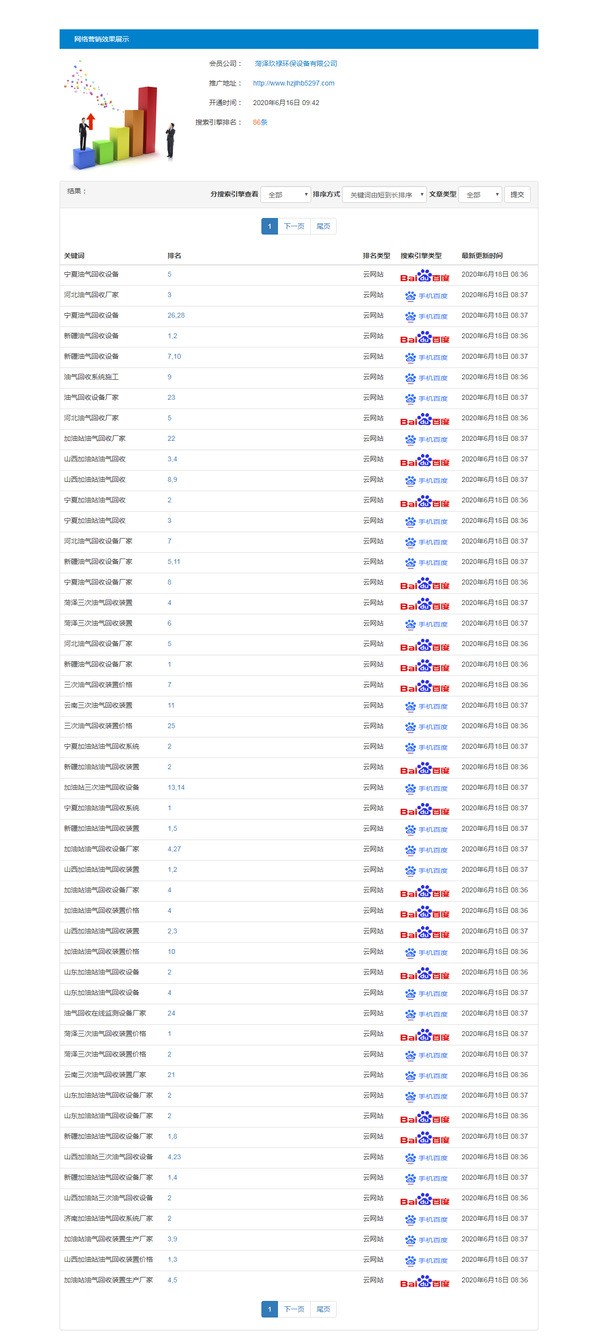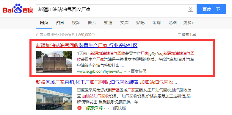 油氣回收行業(yè)全網(wǎng)推廣測(cè)試兩天上詞情況